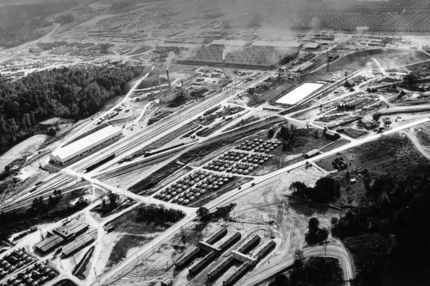 Secret cities emerged overnight to support weapons production. At the western most boundary of the military's new reservation in East Tennessee, the war effort engulfed the tiny Wheat Community (population 1,000), replacing farmhouses and fruit trees with massive concrete and steel structures that would produce the world's first enriched uranium. The boomtown that materialized from the sleepy pastureland became known as Happy Valley. Only steps away, a second community emerged; Happy Valley's smaller "neighbor to the East" would be called Wheat Colony.