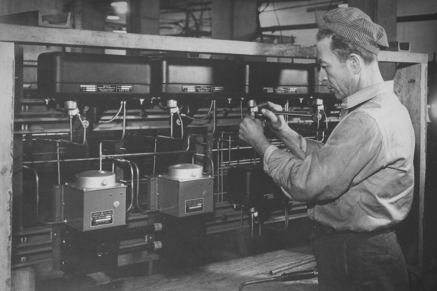 Prefabricating instrument assemblies for installation in gaseous diffusion process system, May 2, 1945.
