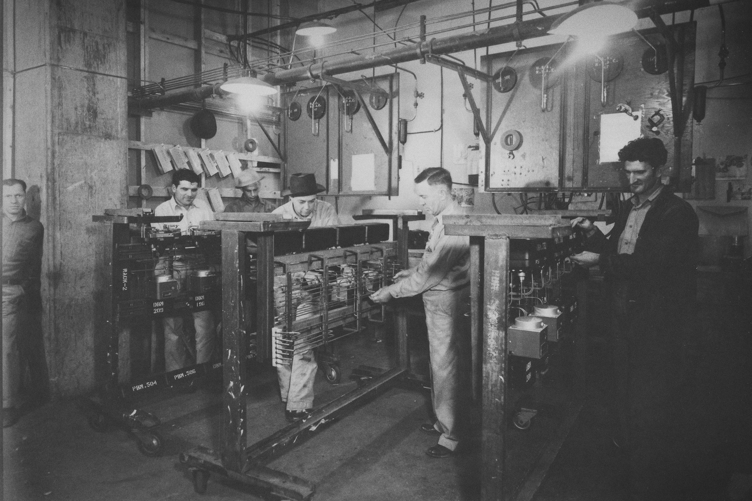The urgency of the production mission resulted in around-the-clock shifts, seven days a week. Cafeterias, grocery stores, and community centers stayed open to accommodate workforce hours. One K-25 worker reflected, "the community was like Las Vegas - it never went to bed."