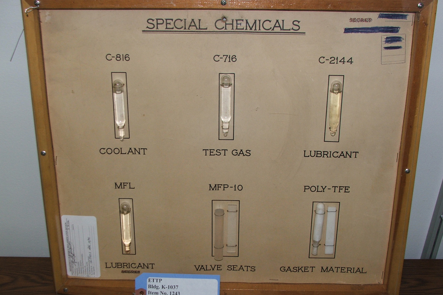 Poster of classified "special chemicals" developed for use with uranium hexafluoride at K-25 with code names to disguise actual chemical names