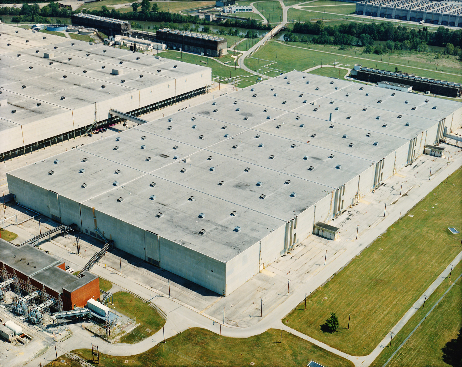 In September 1951, a fourth gaseous diffusion building, K-31, joined the K-25 uranium enrichment complex. K-31 was almost triple in size to K-27 and K-29 at 1.66 million square feet of floor area. The equipment in K-31 included 600 stages of even larger converters and axial-flow compressors than those in K-29. Like K-29, K-31 process equipment was installed on the upper floor of the two-level facility with auxiliary equipment located on the ground floor. K-31 was placed in service in series with K-29, K-27, and K-25 and contributed to the overall defense and commercial missions until shutdown of the K-25 site production facilities in 1985.
