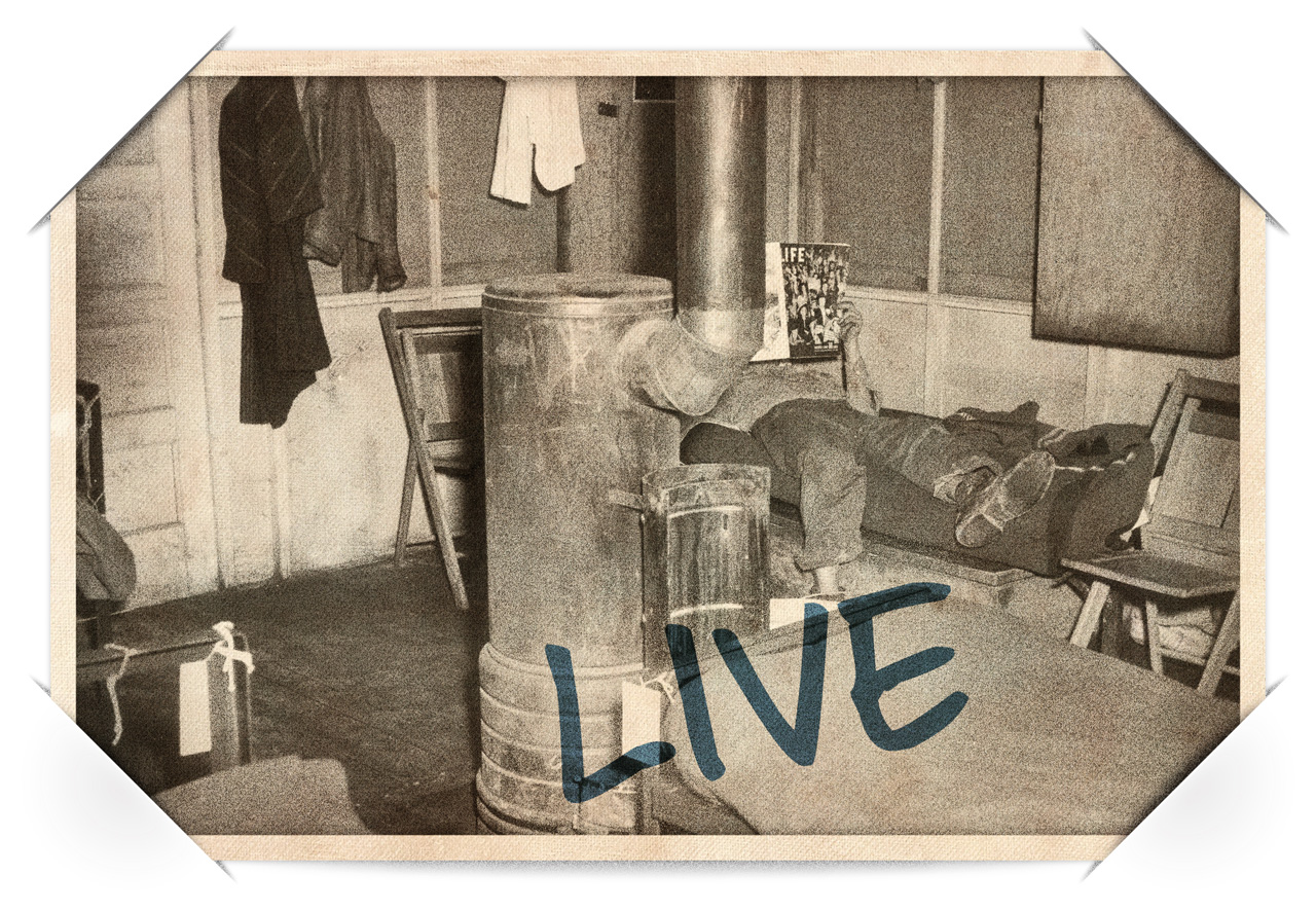 Thousands of Happy Valley and Wheat Colony residents lived in 16 x 16 foot hutments. The stove-heated units accommodated four to five workers and were located in blocks (usually 10 hutments per block) around central washrooms. Screened windows provided ventilation as temperatures rose. Each unit included a waste basket; coal bucket, poker and shovel; and cuspidor (or spittoon). Each resident was issued a cot, pillow, sheets and blanket, as well as towels and wash cloths.