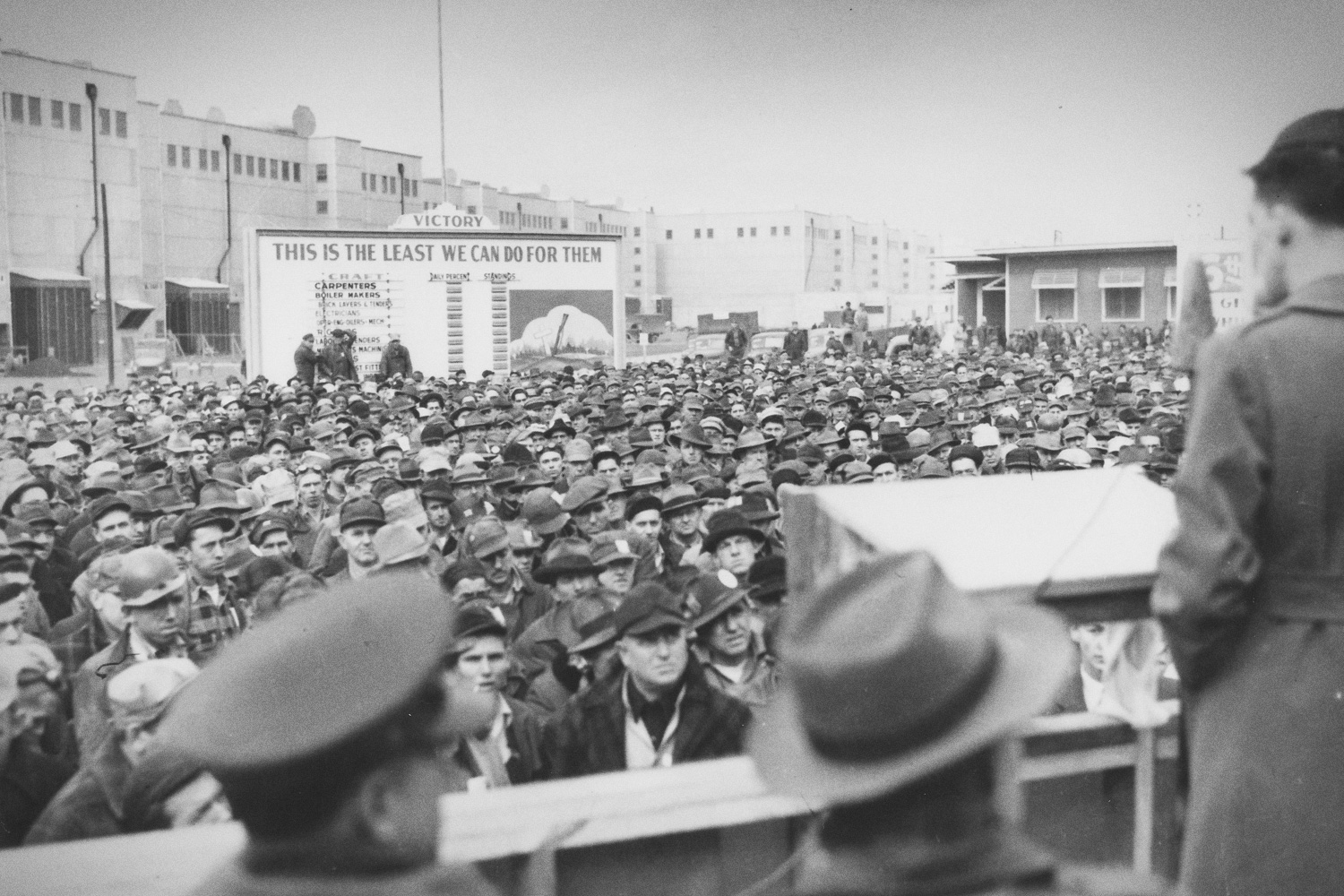 The urgency of the production mission resulted in around-the-clock shifts, seven days a week. Cafeterias, grocery stores, and community centers stayed open to accommodate workforce hours. One K-25 worker reflected, "the community was like Las Vegas - it never went to bed."